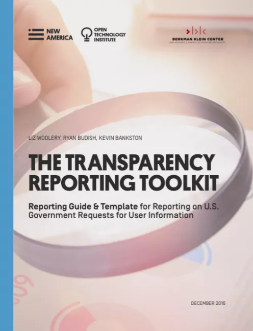 The Transparency Reporting Toolkit is a joint project by New America’s Open Technology Institute and Harvard University’s Berkman Klein Center for Internet & Society. The purpose of the Toolkit is to make it easier for companies to create better transparency reports about government requests for user data. Similarly, by providing a template and best practices, the Toolkit aims to make it easier for new companies to begin transparency reporting. By following the recommendations in this guide, which are grounded in existing best practices, transparency reports can become more consistent, easier to understand, and more effective.