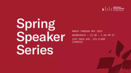 The Berkman Klein Center for Internet & Society is thrilled to announce the Spring Speaker Series! Building on the success of the RSM Speaker Series, launched by the Institute for Rebooting Social Media in the fall of 2023, this topical event series will host a wide slate of academics, industry experts, and tech professionals to share cutting-edge research and ideas related to artificial intelligence, social media, and more.