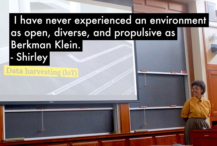 "If truly loving Internet research is wrong, I don’t want to be right. It seems like the rest of the team at Berkman Klein feels the same way — and that’s just one of the reasons why I wanted to be a Berktern in 2017. At Berkman Klein, I had the chance to work on many different projects. I was honored to be part of the AI & the Law team, despite not being an educated lawyer but a having a background in Media Studies. I was involved in experimental and artistic projects as well and I got challenged newly everyday. But the most fruitful parts of my stay in Cambridge were the inspiring people. I felt like I finally met all my lost Internet-freak siblings that came gathered for 10 weeks in that yellow beautiful house from all over the world. I have never experienced an environment as open, diverse, and propulsive as Berkman Klein." - Shirley Ogolla, 2017 Berktern